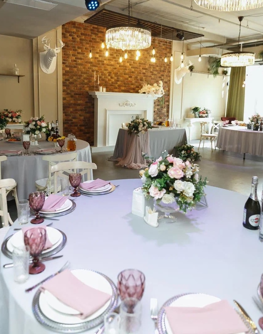 Естественный свет заливает зал. Идеально для дневных свадеб и фотосессий без дополнительного освещения.