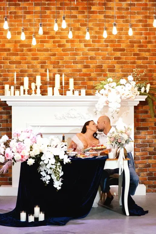 Тёплый акцент интерьера: работает как фон для банкета и как самостоятельная фотозона.