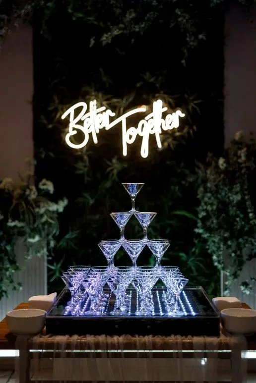 Тёплый акцент пространства, задающий тон всему вечеру. Работает и как фотозона.